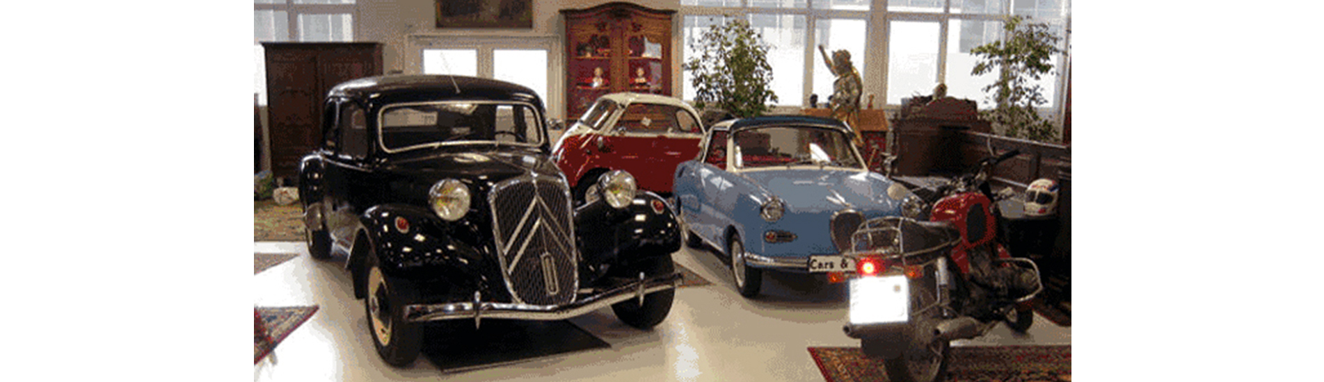 With a simple mouse click, the visitor can get through a world of the finest craftsmanship from the past 400 years. You can see: vintage cars from year of construction 1909-1990; Cupboards / secretaries / chests of drawers / paintings / huge wall paintings / music equipment / carpets. The focus is on the Baroque period for furniture and the "Schnauferl" period for classic cars.
